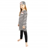 Štýlový pruhovaný kostým väzenkyne vo veľkosti S pre dievčatá 4–6 rokov (105–116 cm) je ideálny na karneval, maškarný aj Halloween. Súčasťou je dlhé tričko a čiapka s číslom väzňa. Oceníte aj ľahké EKO balenie, ktoré šetrí miesto aj prírodu, a pohodlný textilný materiál pre celodennú zábavu.
