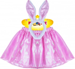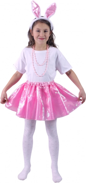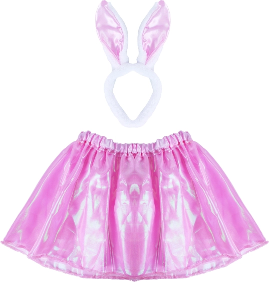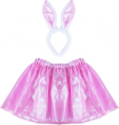 Lesklá ružová sukňa a roztomilá čelenka s ušami zaujmú na prvý pohľad. Perfektné na špeciálne príležitosti a kostýmové párty!