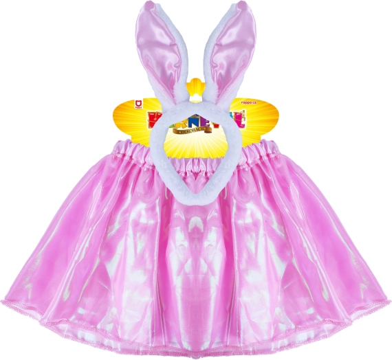 Tento nádherný kostým zajačik je určený pre malé dievčatká, ktoré sa rady stávajú centrom pozornosti na kostýmových párty. Skladá sa z lesklej ružovej sukničky a čelenky s ružovými zajačími ušami. Výrobok je ľahký a pohodlný, čo umožňuje neobmedzený pohyb.