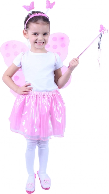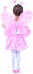 Ružové krídla s polka dots vzorom dodávajú kostýmu čarovný nádych a sú ľahké a pohodlné pre deti.