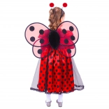 Kostým dokonale napodobňuje lienku vďaka červeným šatám s čiernymi bodkami, krídlam a čelenke s tykadlami.