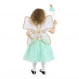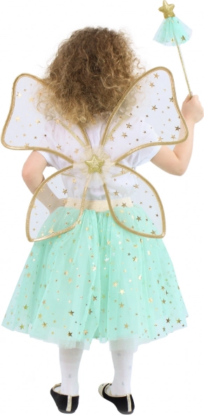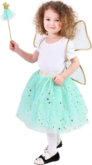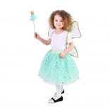 Kostým obsahuje nádhernú zelenú sukničku so zlatými hviezdičkami, doplnenú zladenými krídlami a paličkou pre dokonalý rozprávkový zážitok.