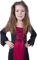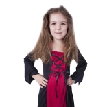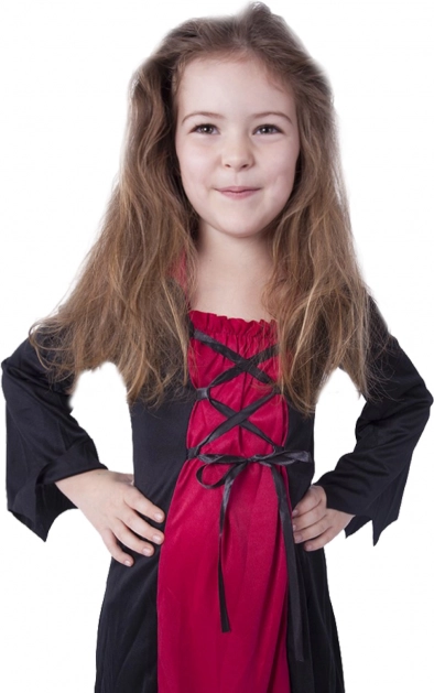 Klasické čierno‑červené šaty so šnurovaním na prednej strane a rozšírenými rukávmi vytvárajú pôsobivý čarodejnícky vzhľad na každú tematickú párty. Kostým je skvelou voľbou na Halloween, karneval aj školské besiedky a vďaka univerzálnej veľkosti S padne väčšine detí vo veku 4–6 rokov.