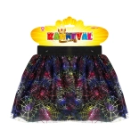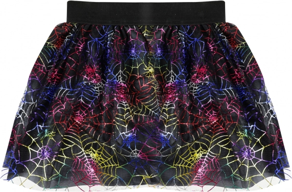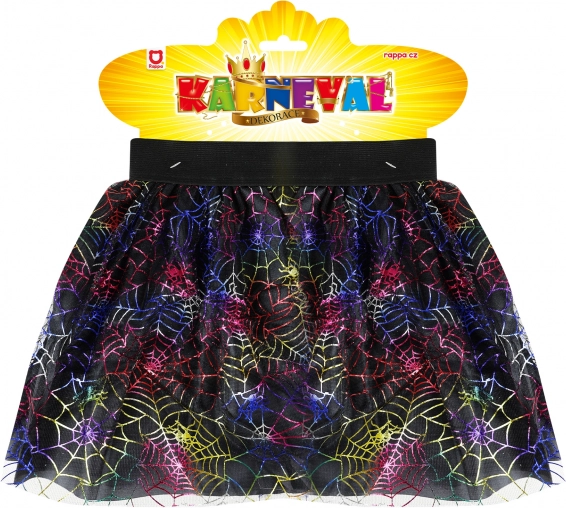 Ľahká tutu sukňa s pestrofarebnou potlačou pavučín poteší každú malú čarodejnicu. Vďaka elastickému pásu sa pohodlne oblieka, má dĺžku 28 cm a je ideálna na Halloween, karneval aj tematické oslavy. Vhodná pre dievčatká vo veku 3–7 rokov.