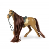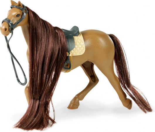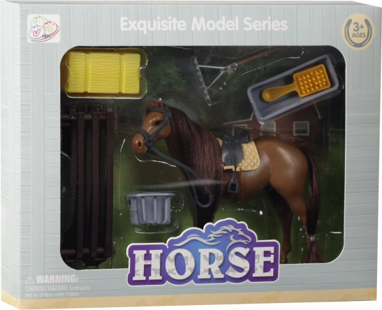 Táto sada s hnedým koňom je ideálna pre deti, ktoré milujú zvieratá a hru na farmu. Kôň má tmavú hrivu, sedlo a vďaka priloženej kefe sa oň môžu deti starať ako o skutočného. Súčasťou je tiež skladacia ohrada, ktorá dodá hre na autentickosti.