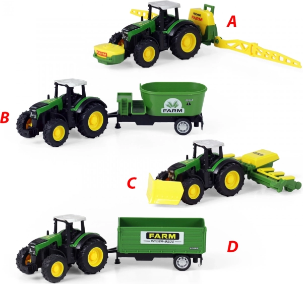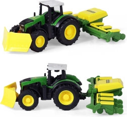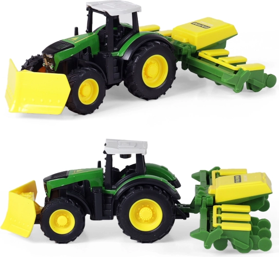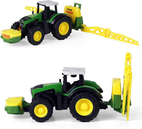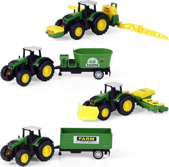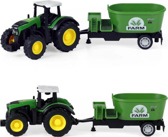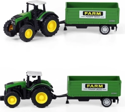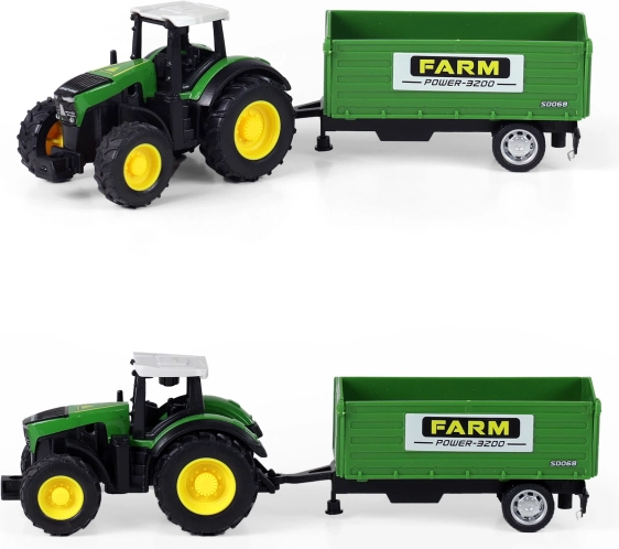 Objavte čaro farmárčenia s týmto moderným traktorom a jeho odpojiteľnou vlečkou. Jednoducho odpojiteľná vlečka vám umožní flexibilitu pre rôzne činnosti na farme. Traktor je vybavený jazdou na spätný zotrvačník a meria cca 18 cm aj s vlečkou. Vyberte si zo 4 rôznych modelov, ktoré zaujmú svojím prepracovaným dizajnom a realistickými detailmi.