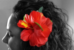 Kvet hibiscus vyrobený z textilu v kombinácii s plastom pôsobí veľmi realisticky a oživí akýkoľvek účes.