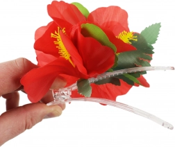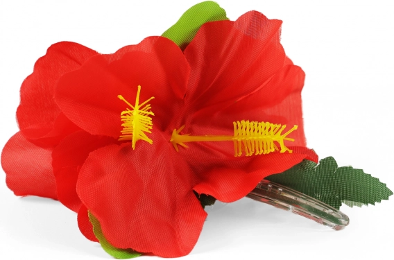 Táto kvetinová spona do vlasov prináša exotiku priamo do vášho štýlu. S jej sýtými červenými kvetmi a zelenými listami sa premeníte na kráľovnú každej akcie, či už ide o plážovú párty, havajský večierok alebo oslavu pri bazéne.