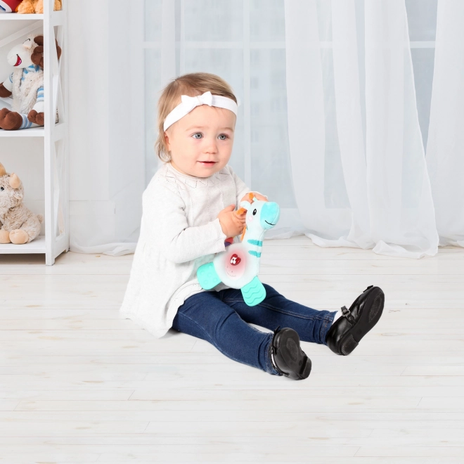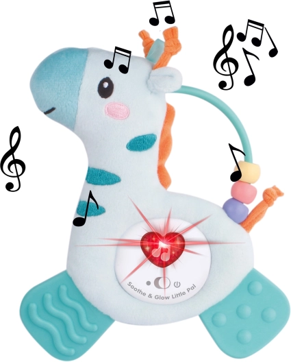 Plyšová žirafa je navrhnutá tak, aby zaujala svojimi pestrými farbami a zábavnými zvukmi, ktoré sa aktivujú pri stlačení. Táto hračka je ideálny spoločník pre detskú hru aj upokojenie.