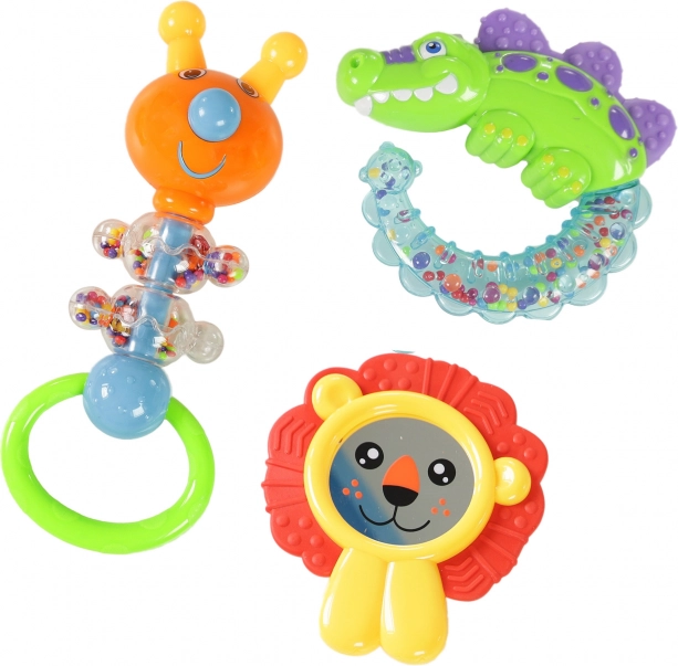 Obohaťte detskú izbu o tri krásne farebné hrkálky v tvare zvieratiek, ako sú hmyzie kamaráti, krokodíl a lev. Každá hrkálka je vyrobená z kvalitného a bezpečného plastu, čo zaisťuje nielen trvanlivosť, ale aj ľahkú údržbu. Vďaka ľahkému úchopu si ich každé dieťa zamiluje.