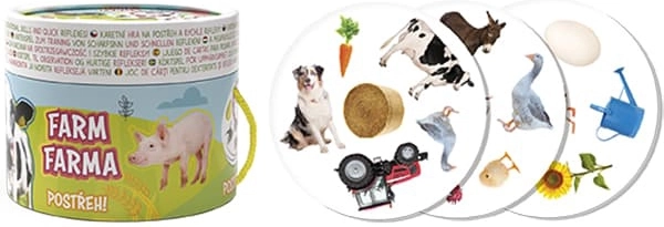 Užite si svižnú zábavu s témou FARMA! Táto postrehová kartová hra prináša rýchle kolo za kolom, kde rozhoduje bystré oko a bleskové reakcie. Vďaka 30 farebným kartičkám a jednoduchým pravidlám sa do hry zapojíte za chvíľku.