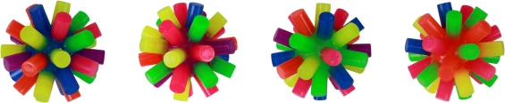 Ostne z mäkkého materiálu zabezpečujú pohodlné uchopenie a zaujímavý hmatový vnem, čo prispieva k rozvoju jemnej aj hrubej motoriky. Nedá sa vybrať konkrétny druh, balenie obsahuje mix farieb. Predaj iba po celom displej balení 12 ks.