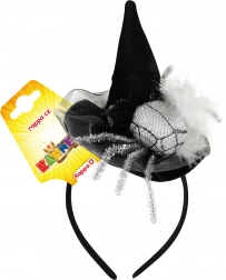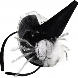 Neprehliadnuteľná čelenka s mini klobúčikom a pavúkom je skvelým doplnkom na párty či karneval. Ideálna do vlasov na oslavu čarodejníc alebo Halloweenu.