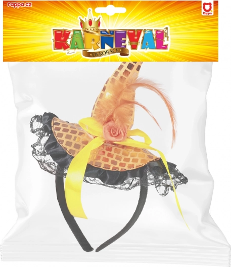 Doladíte svoj kostým štýlovou čelenkou s mini čarodejníckym klobúčikom. Oranžová farba v kontraste s čiernou čipkou vytvára efektný vzhľad, ktorý sa hodí na každú tematickú akciu – od Halloweenu po karneval. Čelenka je ľahká a pohodlne drží vo vlasoch, takže si môžete naplno užiť zábavu.