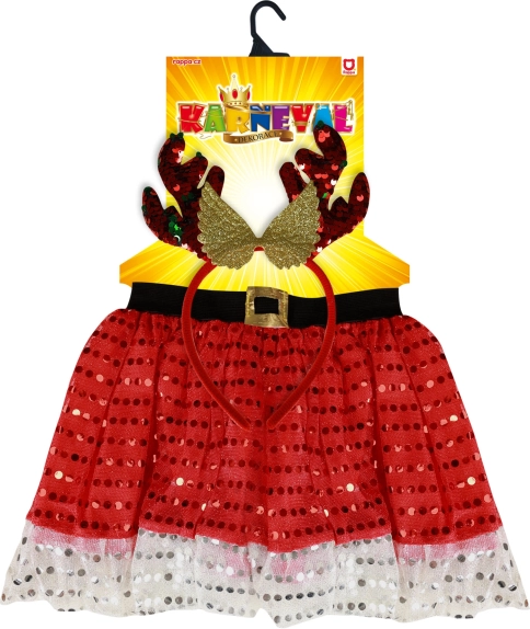 Urobte z Vianoc nezabudnuteľnú udalosť s naším detským vianočným kostýmom TUTU, ktorý je ideálny pre malé princezné. Sukňa v červenej farbe s bielym volánom dodáva celku atmosféru slávnostnosti. Vďaka elastickému čiernemu pásu sa prispôsobí každej postave. Súčasťou kostýmu je aj senzačná čelenka s jeleňovými rohmi, ktorá dokonale podčiarkuje celkový dojem.