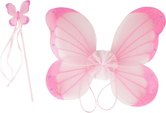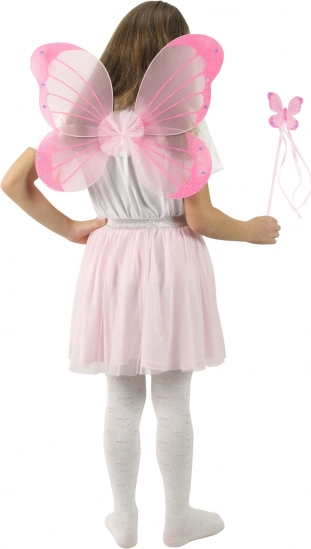 Ružové krídla a palička s motýlím dekorom sú ideálne pre karnevaly, kostýmy a hry na víly.