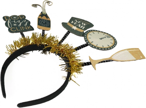 Čelenka prináša do silvestrovských osláv štipku humoru a originality s nápismi 'Pop Fizz Clink'.