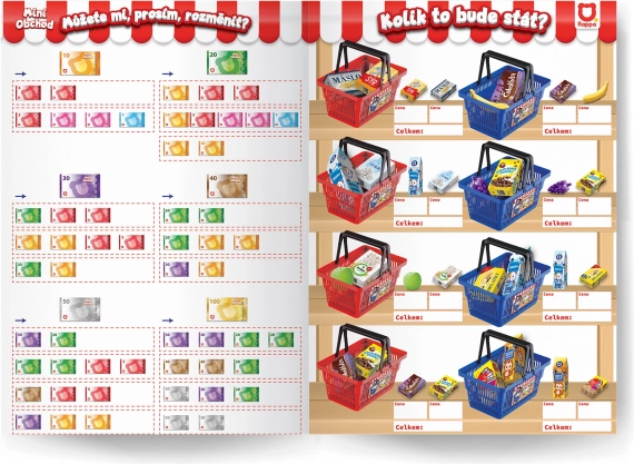 Obsahuje makety bankoviek, mincí, platobných kariet a ďalšie pomocné materiály pre zábavné učenie.
