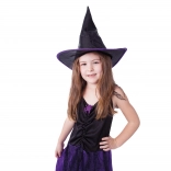 Premeňte svoju dievčinku na malú čarodejnicu behom okamihu. Ľahučké šaty v čierno‑fialových tónoch s pavučinkovým dekorom a ladiaci špicatý klobúk zaistia kúzelný vzhľad aj pohodlné nosenie po celý deň.