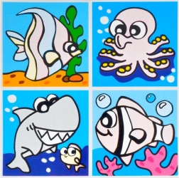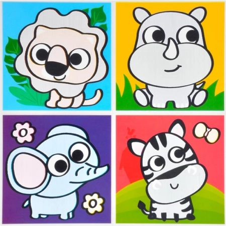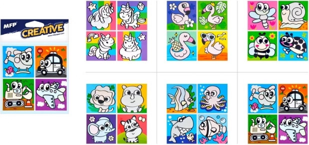 V balení nájdete zmes motívov, vrátane zvierat a dopravných prostriedkov. Každý arch obsahuje štyri obrázky, ktoré sa dokonale hodia pre detskú kúpeľňu.