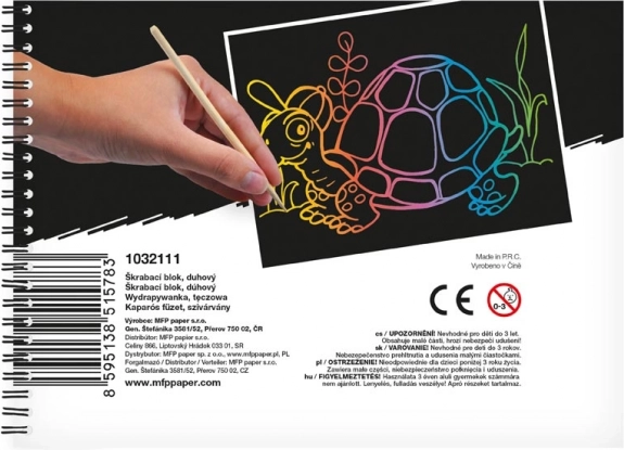 Tento vysokokvalitný Škrabacie obrázok blok je skvelý pre rozvoj jemnej motoriky a fantázie. Vďaka nemu môžete:
