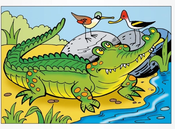 - Veľké obrázky zvierat ako krokodíl, lev, opica a ďalšie.