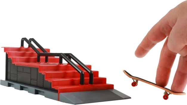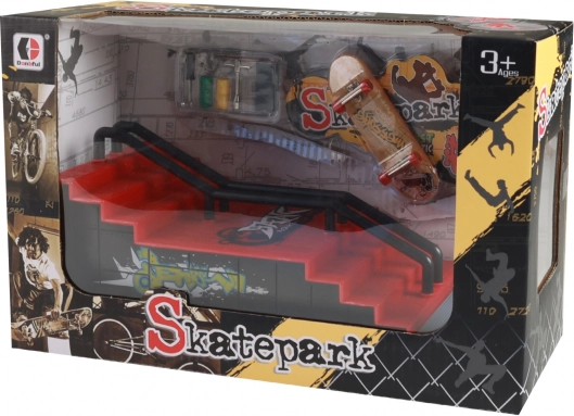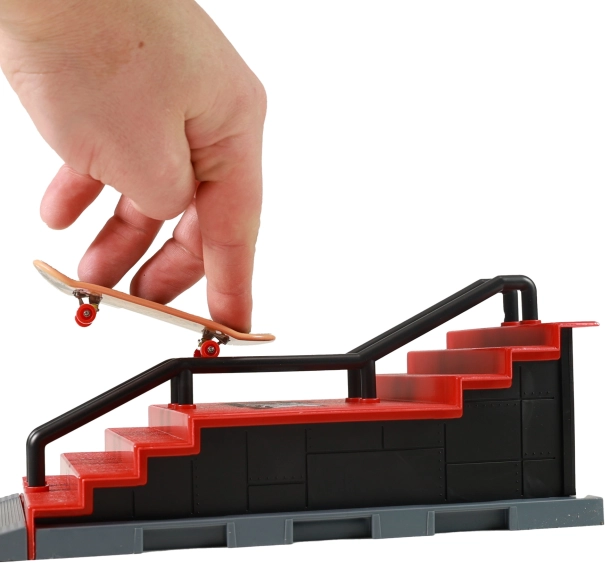 Vytvorte si vlastné fingerboardové dobrodružstvo s týmto mini skateparkom, ktorý je ideálny na tréning trikov. Set zahŕňa rampu so schodiskom a stabilným zábradlím, čo vám umožní vykonávať rôzne triky, presne ako v skutočnom skateboardovom parku.