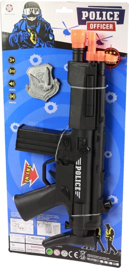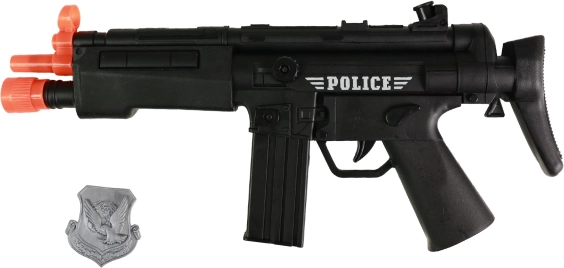 Policajný plastový samopal je perfektná hračka pre všetky deti, ktoré rady hrajú na stráženie zákona. Tento samopal ponúka realistické zvuky streľby, ktoré aktivujete stlačením spúšte. Hračka vyžaduje 2 AA batérie, ktoré nie sú súčasťou balenia.