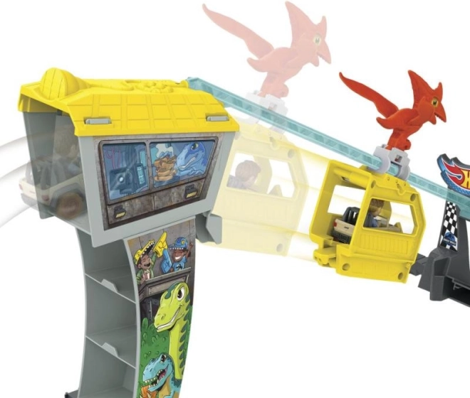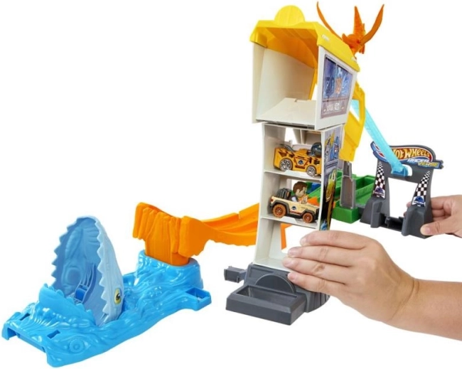Zažite adrenalínový únik z ostrova Jurský svet s touto pretekárskou dráhou Hot Wheels. Ponorte sa do sveta pretekania a dobrodružstiev s týmto jedinečným herným setom, ktorý ponúka napínavé preteky a nezabudnuteľné okamihy na zipline.