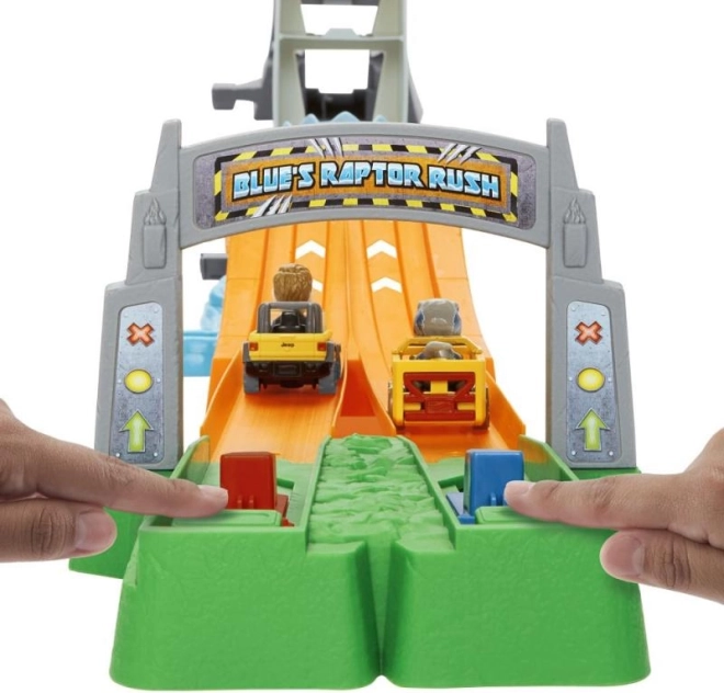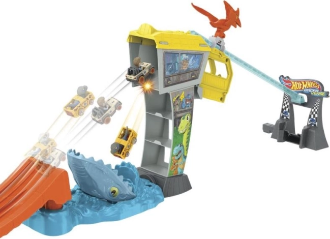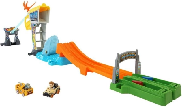 Hot Wheels Jurský svet pretekárska dráha vás prenesie do prostredia plného rýchlosti a vzrušenia. Tento set zahŕňa: