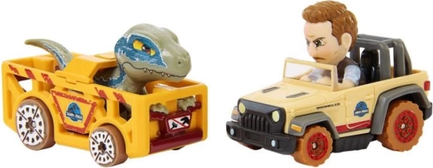 Zažijete skutočné napätie vďaka autám Blue Raptor a Owen s integrovanými figurkami vodičov.