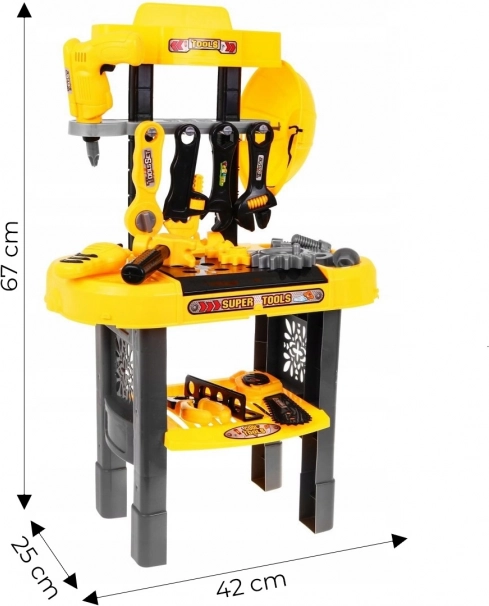 Dielňa je vyrobená z bezpečného plastu a je určená pre deti od 3 rokov. Poskytuje mnoho hodín zábavy a vzdelávacej hry.