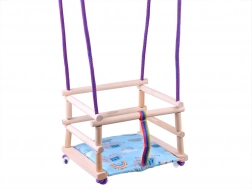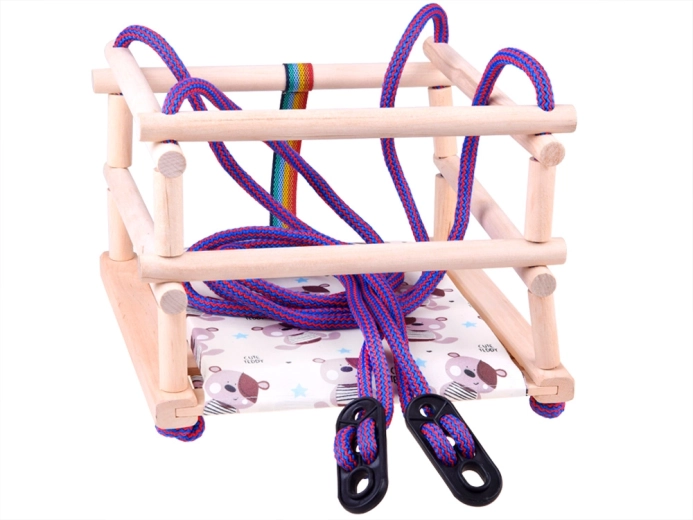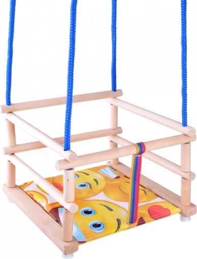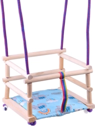 Bezpečnosť zabezpečuje bezpečnostný pás, ktorý chráni dieťa pred vypadnutím z hojdačky.