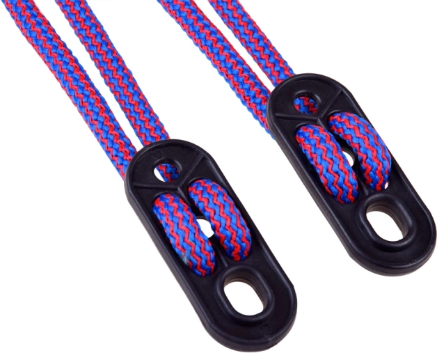 Laná sú zakončené plastovými závesmi, ktoré umožňujú rýchlu montáž alebo demontáž hojdačky z háčikov.