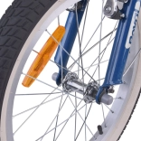 O bezpečné zastavenie sa starajú hliníkové brzdy V‑brake s páčkami prispôsobenými detským rukám. Viditeľnosť zabezpečuje sada odraziek vpredu, vzadu aj vo výplete kolies. Plášte 2.125" so spoľahlivým záberom si poradia s rôznymi povrchmi, zatiaľ čo kryt reťaze a kovové blatníky chránia oblečenie. Na prvé kilometre nechýbajú pomocné kolieska a praktický prútený košík na drobnosti.