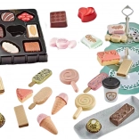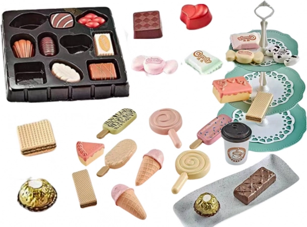 Táto bohatá sada pre malých milovníkov sladkostí ponúka všetko potrebné na otvorenie vlastnej mini cukrárne. Deti si môžu servírovať dezerty, aranžovať ich na elegantnej trojposchodovej mise a „variť“ kávu pre hostí. Realistický vzhľad dielov a príjemná paleta farieb podporujú kreativitu, rolové hry aj jemnú motoriku.