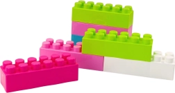 Tento farebný set veľkých plastových kociek v odtieňoch zelenej, ružovej, bielej a tyrkysovej je ideálny pre prvé stavebné projekty. Mimoriadne veľké rozmery (28 × 9 × 9 cm) zabezpečujú bezpečné a komfortné držanie, takže deti môžu stavať veže, mosty aj vlastné fantazijné stavby. Praktická prenosná taška uľahčuje ukladanie aj prenášanie – zábava tak môže cestovať s vami.