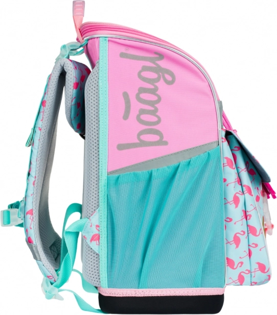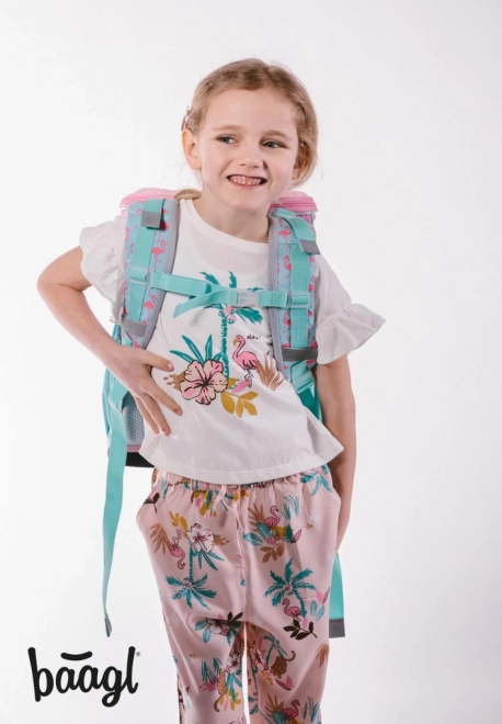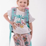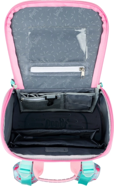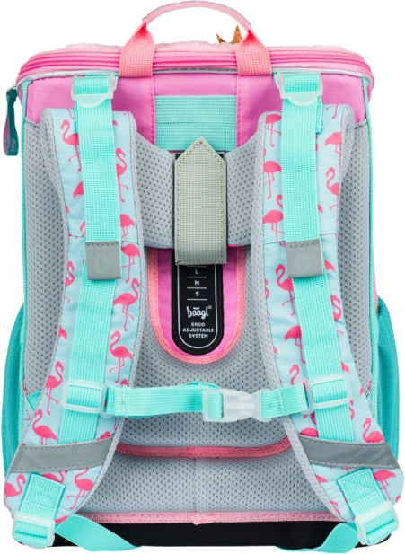 Školská sada Zippy Plameniak je ideálnou voľbou pre deti a rodičov, ktorí hľadajú kombináciu kvality, komfortu a štýlu. Ergonomická aktovka je vybavená posuvným chrbtovým systémom ERGO ADJUSTABLE SYSTEM, ktorý umožňuje optimálne nastavenie popruhov podľa výšky dieťaťa. Telo aktovky je z pevného, vodeodolného materiálu, ktorý si zachováva stabilný tvar a váži iba 1100 g.