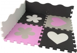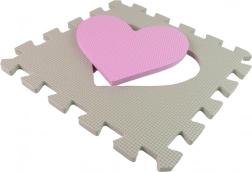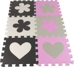Vyberateľné stredové tvary – srdiečko a kvietok – podporujú rozvoj jemnej motoriky, priestorovej predstavivosti a učenie formou hry. Podložka sa ľahko udržiava v čistote, stačí ju utrieť vlhkou handričkou. Po hraní ju rýchlo rozoberiete a uložíte do praktického prenosného obalu.