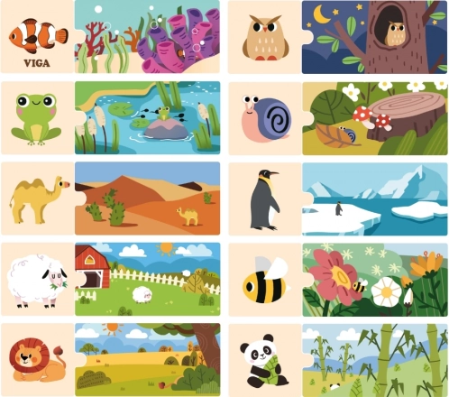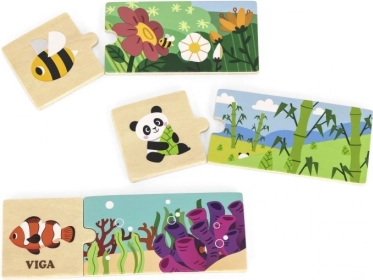Tieto logické puzzle od značky VIGA sú ideálnym nástrojom pre rozvoj detského logického myslenia a predstavivosti. Hra spočíva v správnom spájaní 20 farebných dielikov, ktoré spolu vytvárajú obrázky zvieratiek a ich prirodzeného prostredia. Každý dielik je starostlivo vyrobený z dreva, pokrytý netoxickou farbou, čo zabezpečuje dlhú životnosť a bezpečnosť pre deti.