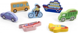 - - 7 dielikov s motívom: lietadlo, vrtuľník, nákladiak, bicykel, auto, autobus a loď