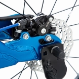 Predná čeľusťová a zadná kotúčová brzda poskytujú silný a plynulý brzdný účinok. Ergonomické páky a riadidlá sú prispôsobené detským rukám.