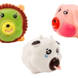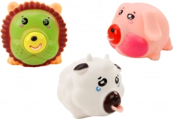 Hlavnou atrakciou týchto figúrok je interaktívna funkcia: po stlačení každé zvieratko vydá pískavý zvuk a z papuľky mu vykukne vtipný jazyk. Táto nečakaná reakcia určite vyčarí úsmev na tvári každého dieťaťa a podporí opakovanú hru.