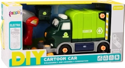 Tento kreslený recyklačný voz DIY deťom umožní nahliadnuť do sveta strojov a mechaniky. Vďaka bezpečnej hračkárskej vŕtačke, skrutkovaču a vymeniteľným nadstavcom si deti môžu auto samy rozobrať a zložiť, čím trénujú jemnú motoriku, logické myslenie aj trpezlivosť. Predné kefy sa pri jazde otáčajú a spolu s priloženým košom vytvárajú autentickú simuláciu upratovania ulíc.