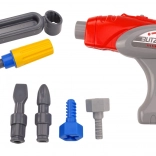 V balení nájdete detskú bateriovú vŕtačku (napájanie 3× AAA, nie sú súčasťou), skrutkovač a niekoľko výmenných bitov. Hračka je vhodná pre deti od 3 rokov a bola vyrobená s dôrazom na bezpečnosť a odolnosť.