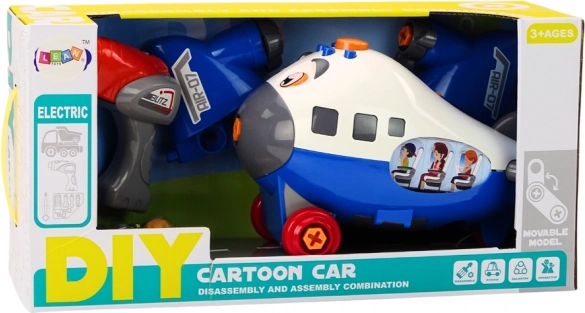 Zábavné kreslené lietadlo na montáž v modrej farbe podnecuje malých konštruktérov k objavovaniu sveta mechaniky. Súčasťou je detská aku vŕtačka, skrutkovač a výmenné nadstavce, vďaka ktorým môžu deti lietadlo samy rozoberať a skladať, rozvíjať jemnú motoriku, logické myslenie a kreativitu. Vhodné od 3 rokov, s certifikáciou CE a normou EN71.