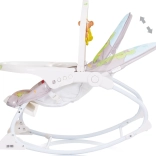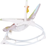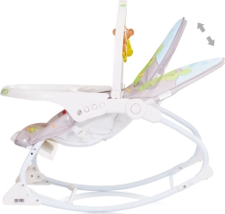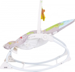 Detské hojdacie kresielko Enjoy dinosaurus prináša bábätku pokoj a zábavu v jednom. Kombinácia melódií a jemných vibrácií pomáha uspať aj upokojiť, zatiaľ čo hrazdička s hračkami podporuje rozvoj zmyslov a motoriky. Vďaka dvojitému nastaveniu operadla ľahko prispôsobíte polohu na oddych aj hranie.