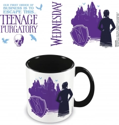 Doprajte si obľúbený nápoj so štýlovým keramickým hrnčekom inšpirovaným svetom WEDNESDAY. Minimalistické bielo‑čierne prevedenie s fialovými akcentmi podčiarkuje temnú atmosféru Nevermore Academy a skvele zapadne do každodenného používania aj ako zberateľský kúsok.
