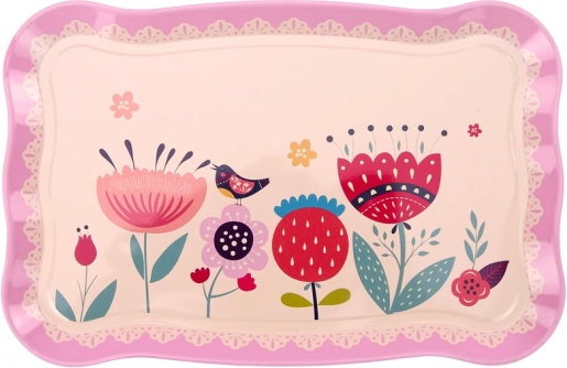 Dekoratívny podnos s kvetinovými motívmi uľahčuje prenášanie a dodáva servírovaniu skutočný kaviarenský šmrnc.