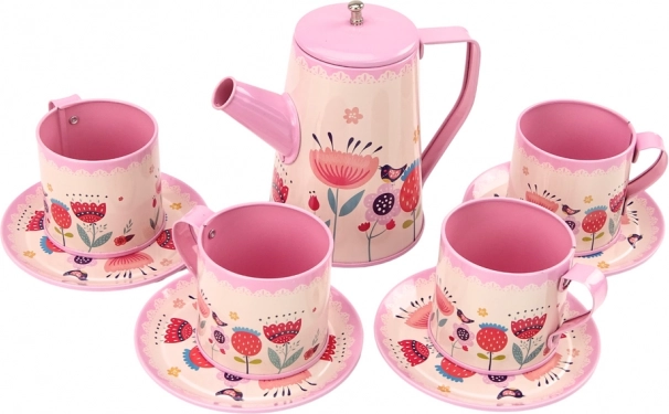 Roztomilá detská čajová súprava z kovu v ružovej farbe poteší všetky malé hostiteľky aj hostiteľov. Obsahuje všetko potrebné na hru na kaviareň: podnos, kanvičku, hrnčeky a tanieriky. Vďaka pevnému materiálu je súprava odolná a bezpečná pre deti od 3 rokov. Farebné kvetinové motívy a praktické prvky robia z každej hry veselú a realistickú zábavu, ktorá rozvíja fantáziu a sociálne zručnosti.